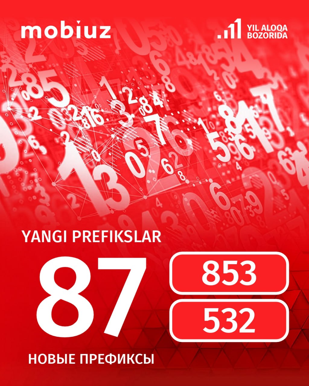 Mobiuz yangi prefikslarga ulanish imkoniyatini yaratib, abonentlarga qulay va oson esda qoladigan raqamni tanlash uchun ko‘proq tanlov imkoniyatini taqdim etadi.
